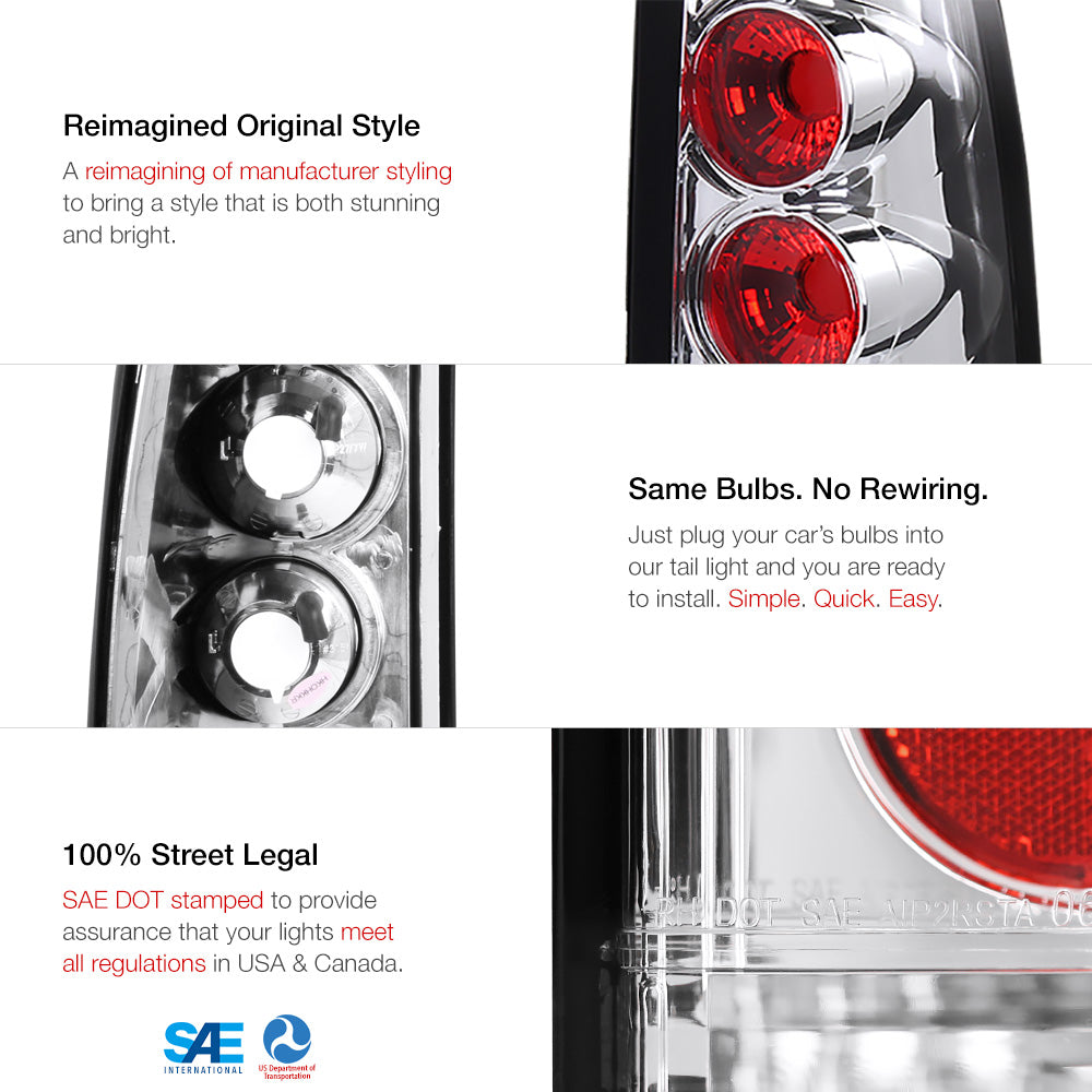 Award Winning Chevrolet Silverado along with its identical cousin, GMC Sierra were created to compete in the heavy-duty pickup trucks. With tough exterior, it was a truck meant to stand the test of time. But with time all things age and do not function as it used to, just like the headlights. Remove those aging tail lights and use these new clear, better chrome interior tail lights that provide a brighter, wider radius light that will illuminate any highway. Drive with confidence.