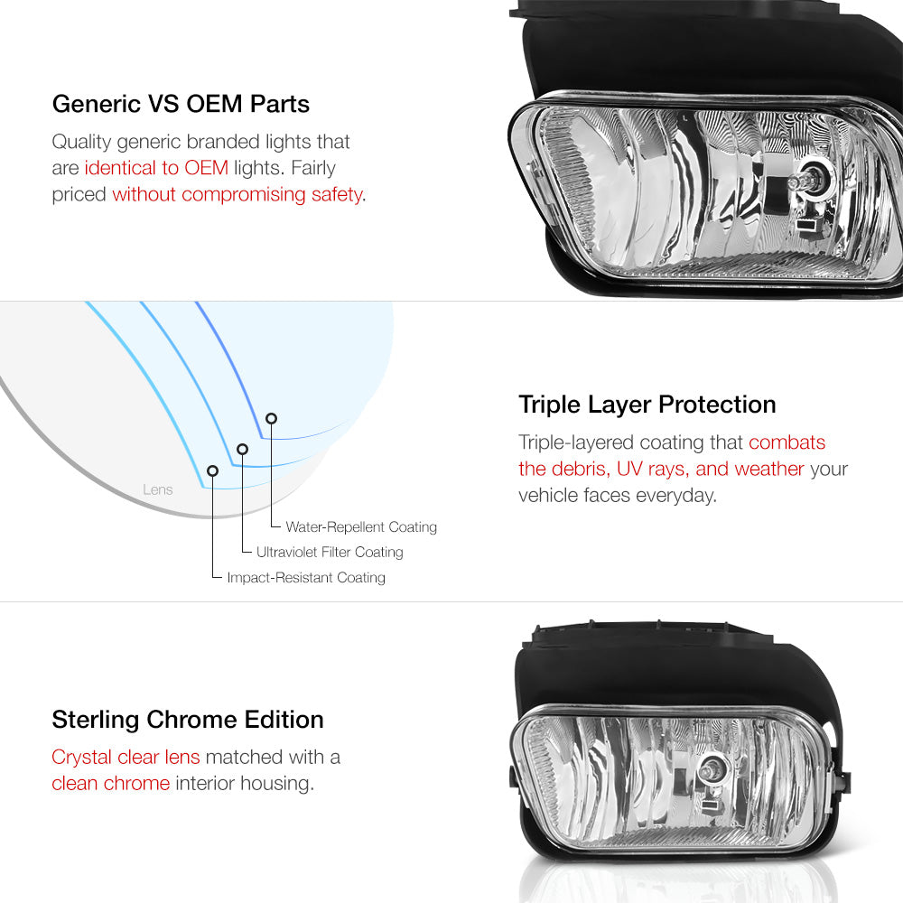 Fog Light What's In The Box | Driver side only | 9005 halogen bulbs included | Complete assembly What You Might Need | Tools For Installation Color | Sterling Chrome - Chrome housing with transparent clear lens Brand | Spyder Auto Warranty | 60-Days