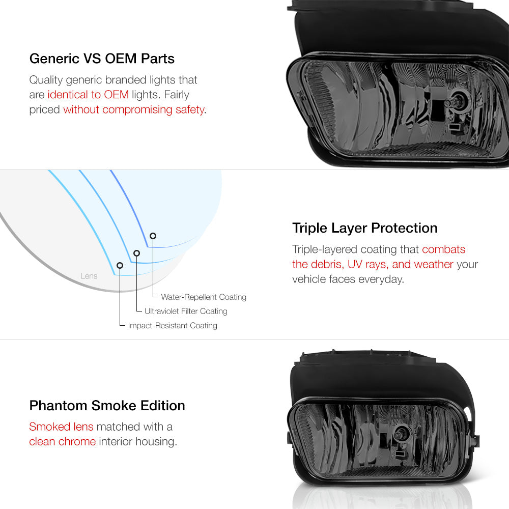 Fog Light What's In The Box | Pair - Driver & passenger side | 9005 halogen bulbs included | Complete assembly What You Might Need | Tools For Installation Color | Phantom Smoke - Shimmering chrome housing with smoke lens Brand | Spyder Auto Warranty | 60-Days