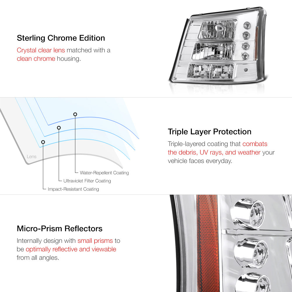 Award Winning Chevrolet Silverado and Avalanche were created to compete with other heavy-duty cars. With tough exterior, it was a car meant to stand the test of time. However, aging is an irresistible factor that will hit all cars, and those factory headlights might not function as it used to be. It is time to remove those aging headlights and upgrade to our crystal glass headlights. These headlights come with better chrome interior, which provides a brighter, wider radius light that will illuminate any highway.
