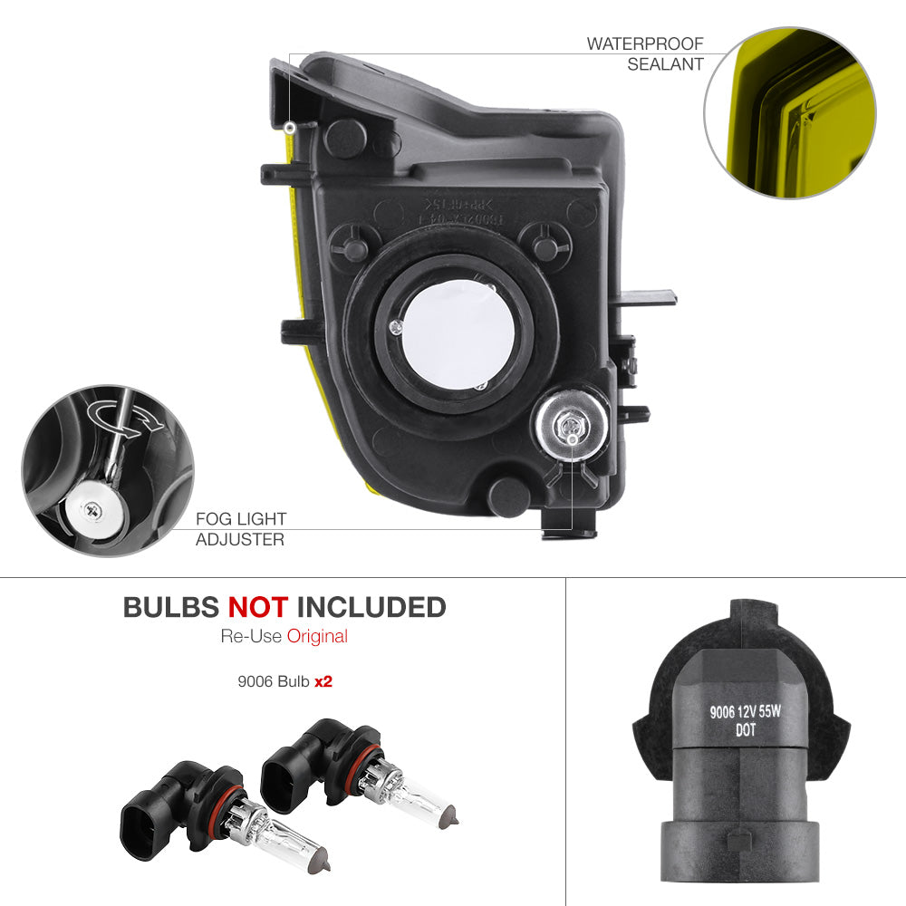 Fog Light What's In The Box | Pair - Driver & passenger side | Bulbs Included | Complete assembly What You Might Need | Re-use original 9006 bulbs Color | Golden Yellow - Dazzling chrome housing with golden yellow lens Brand | Spyder Auto Warranty | 60-Days