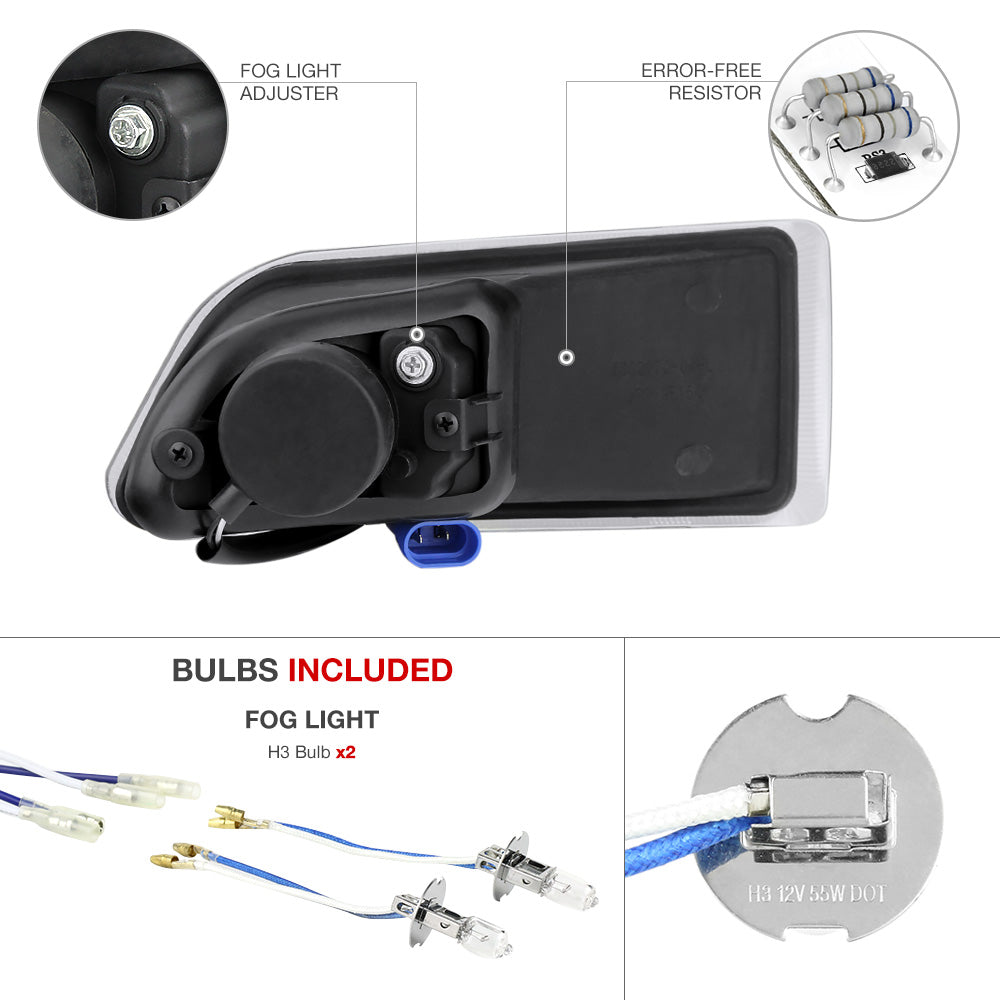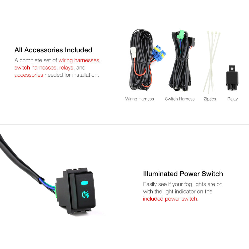 What's In The Box | Pair - Driver & passenger side | H3 halogen bulbs included | Switch, harness, relay