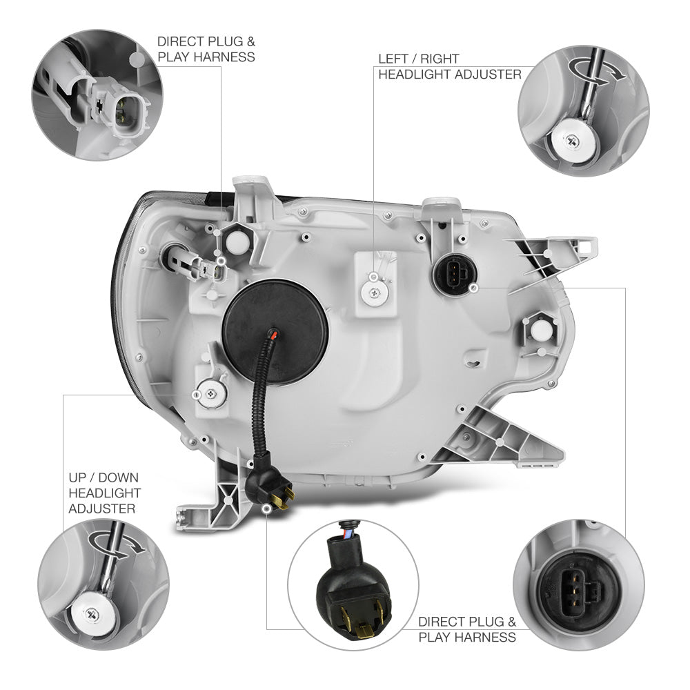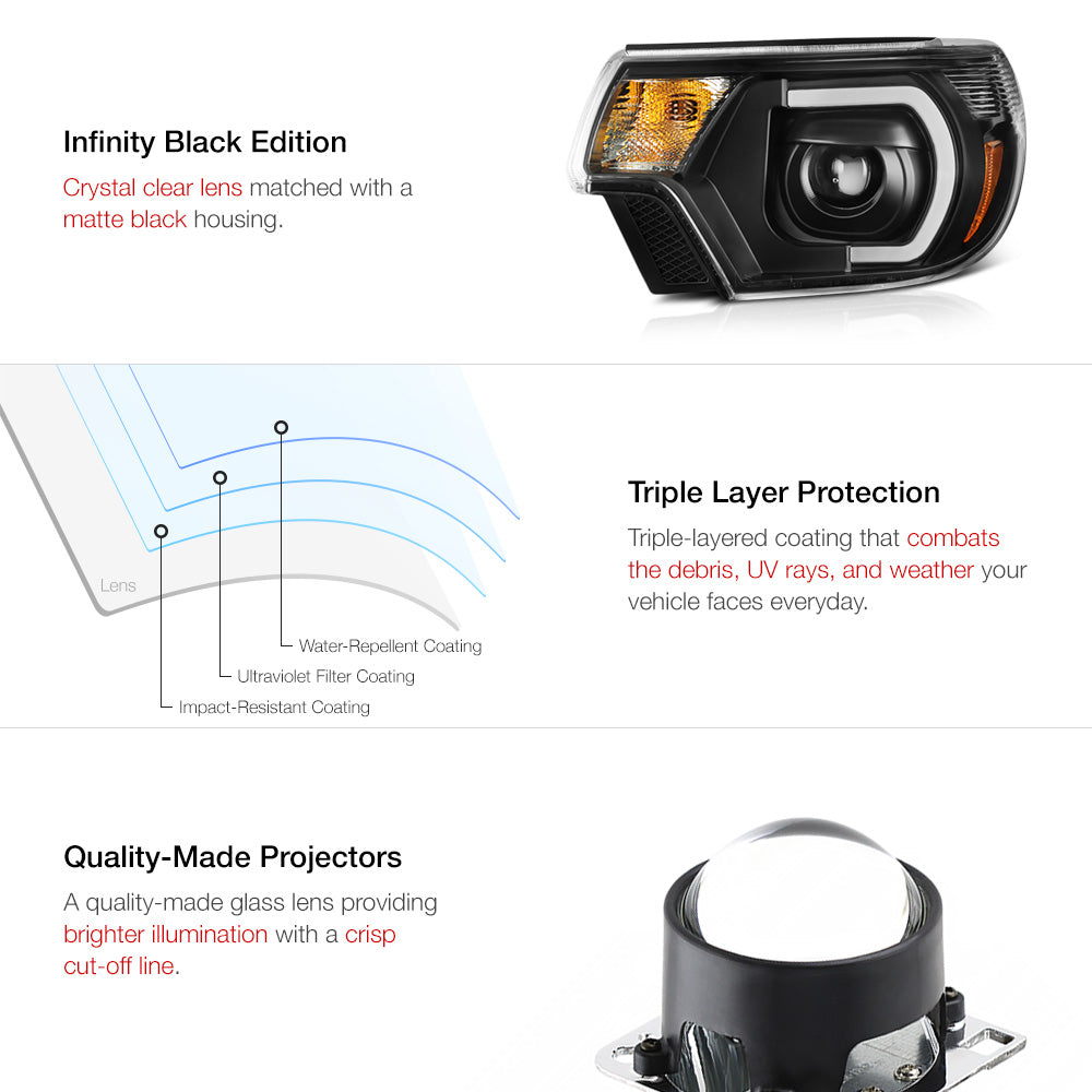 Projector Head Lights What's In The Box | Pair - Driver & passenger side | Bulbs Included - High beam, low beam, signal, parking What You Might Need | Tools For Installation Color | Infinity Black - Matte black housing with transparent clear lens DOT & SAE | Approved street legal by DOT (Department of Transportation) & SAE (Society of Automotive Engineers) Brand Spyder Auto Warranty 60-Days High Beam | H9 bulbs included Low Beam | H9 bulbs included Signal | 3457 bulbs included Parking | 3457 bulbs included